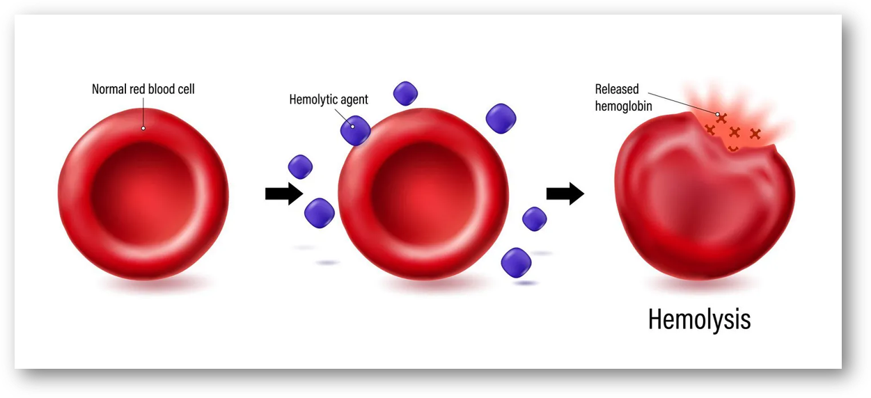 Hemolysis is the destruction of red blood cells. On ECMO, it usually means the circuit is stressing the blood due to suction, turbulence, or clot.