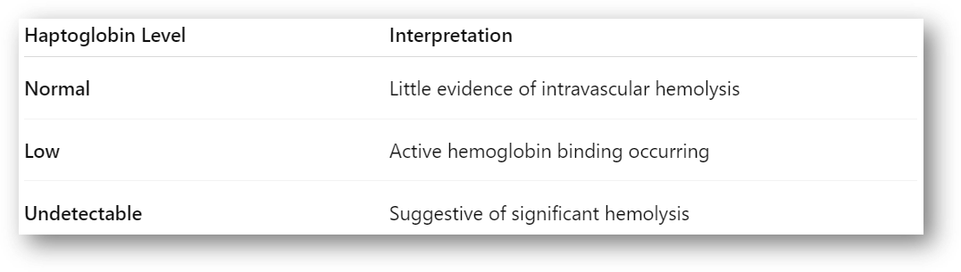 When hemolysis occurs, haptoglobin is consumed and levels fall.