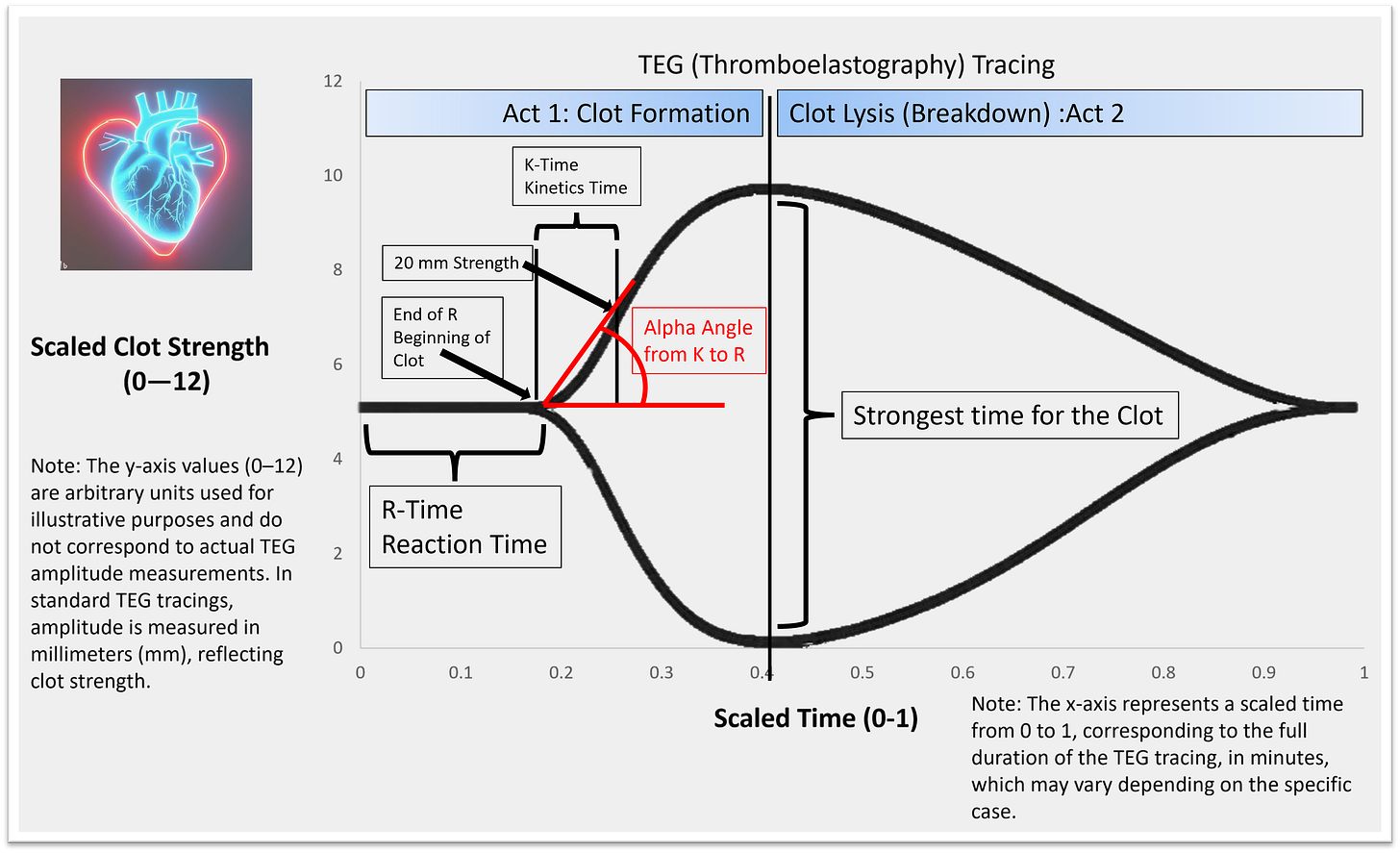 Think of the TEG tracing as the lifespan of a clot, split into two acts: