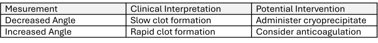 What it measures: Slope between R and 20 mm clot strength (speed to get to 20mm clot strength)
